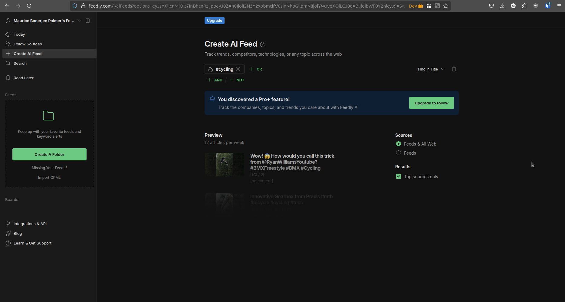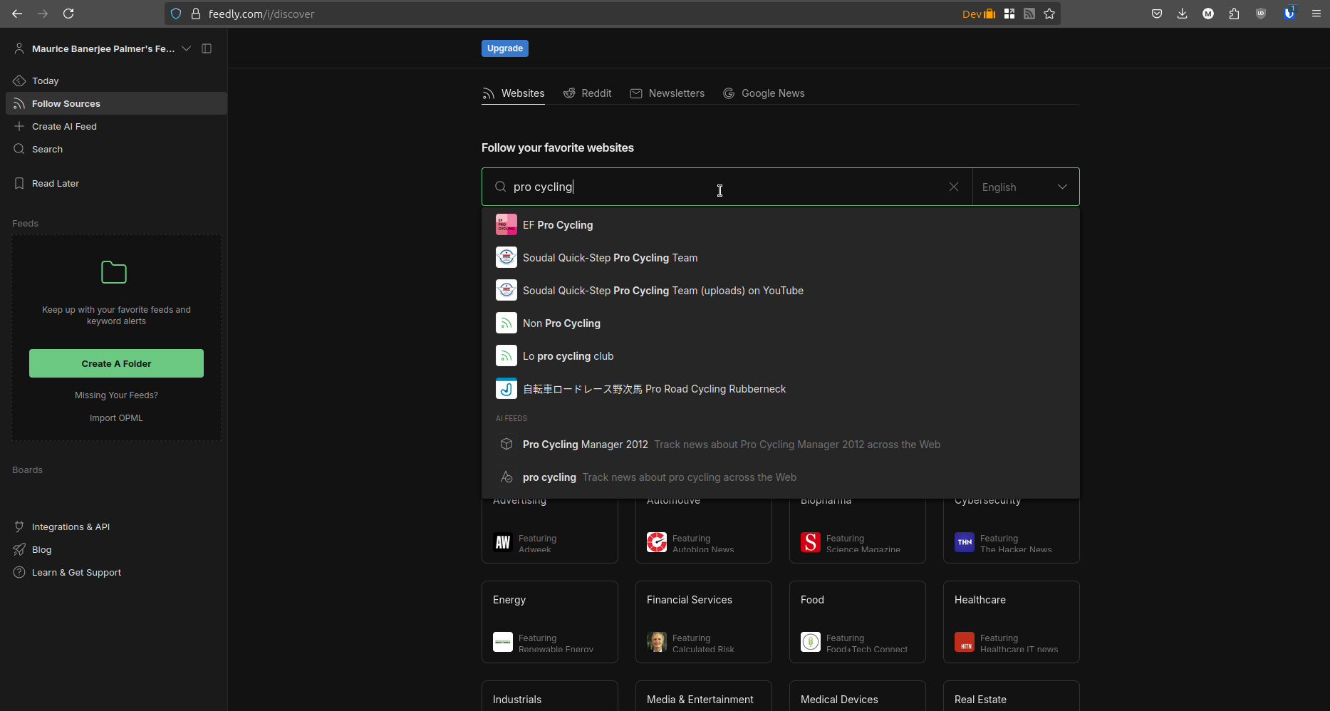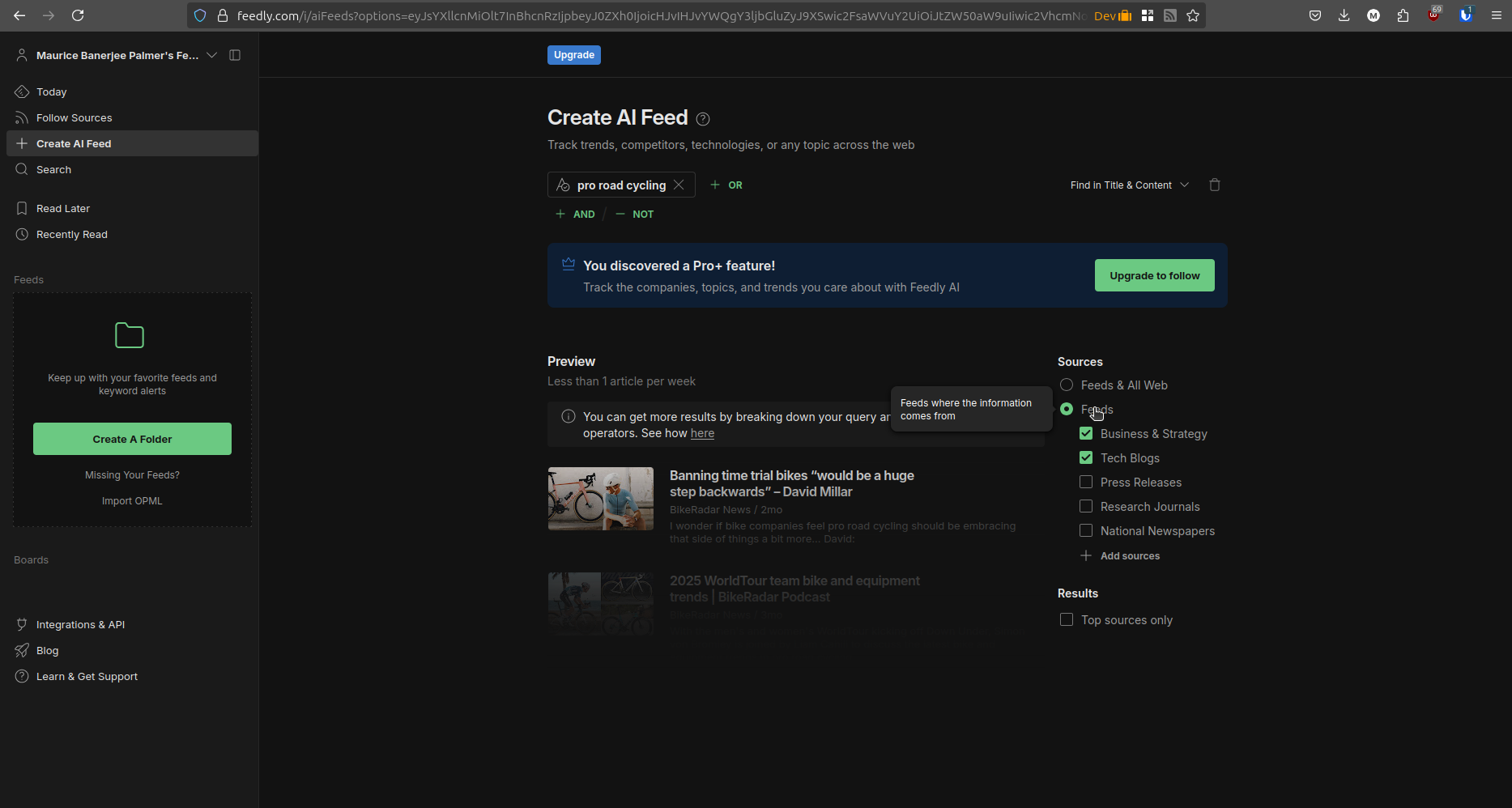- Do: I asked Feedly AI feeds for ‘pro road cycling’.